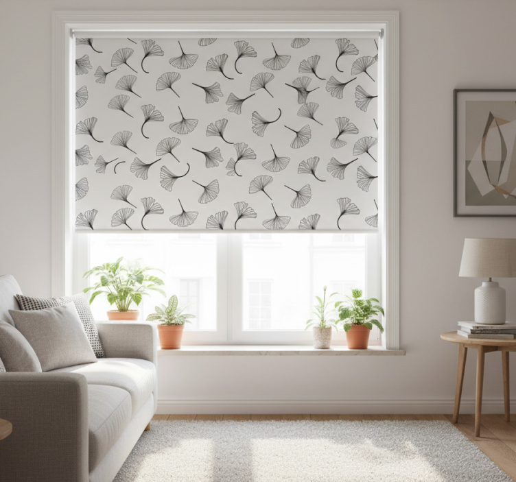 The Modern blind ginkgo leaves black design modern blind is an inspiring choice for those looking to elevate their interior décor. Its unique graphical representation of ginkgo leaves adds a touch of nature to your living space, creating a warm and inviting atmosphere. Imagine the compliments you'll receive from guests as they admire the stylish design that seamlessly blends functionality with beauty!