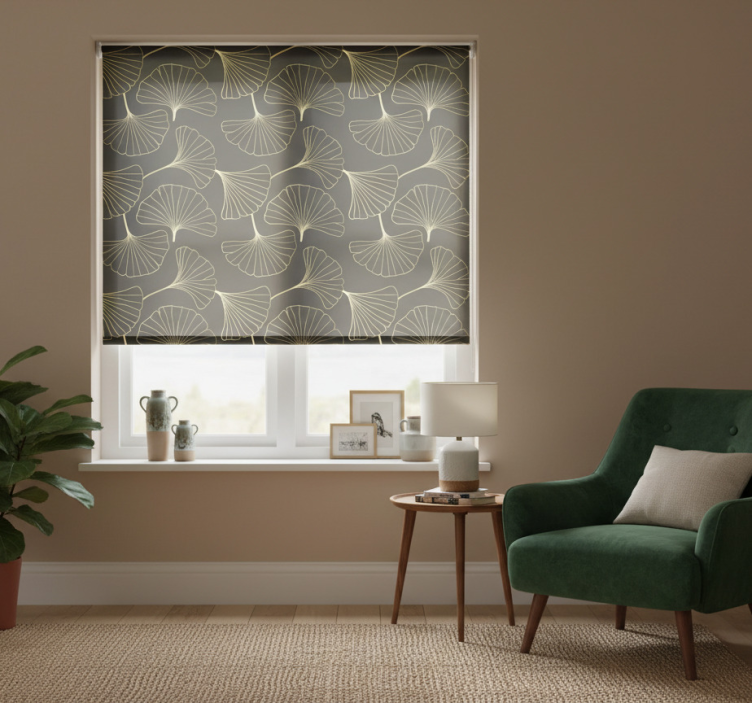 Reference: E7817Introducing our stunning Modern blind ginkgo leaves charcoal gold, a perfect fusion of elegance and functionality! This roller blind features a beautiful ginkgo leaf pattern in a rich charcoal gold hue, creating a chic and modern look that complements any decor. With its easy assembly in just two clicks, effortless cleaning, and the ability to regulate room temperature while providing privacy, this roller blind is an ideal choice for those who value style and practicality.
