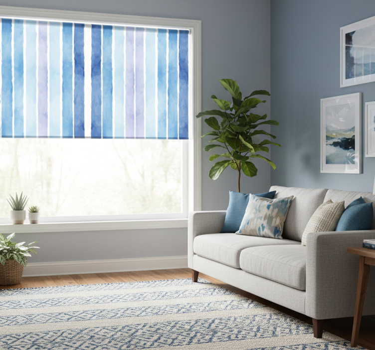 The Modern blind in blue watercolor lines pattern modern blind is the perfect decorative element for any home. Its captivating design brings a touch of creativity and tranquility to your living space, making it an inspiring choice for those looking to elevate their interior. This modern blind not only serves a functional purpose but also transforms your room into a stylish retreat. Imagine waking up to the gentle hues of blue dancing across your walls, creating a peaceful atmosphere that encourages relaxation and creativity. You deserve a space that reflects your personality, and this roller blind is the ideal choice to achieve that!