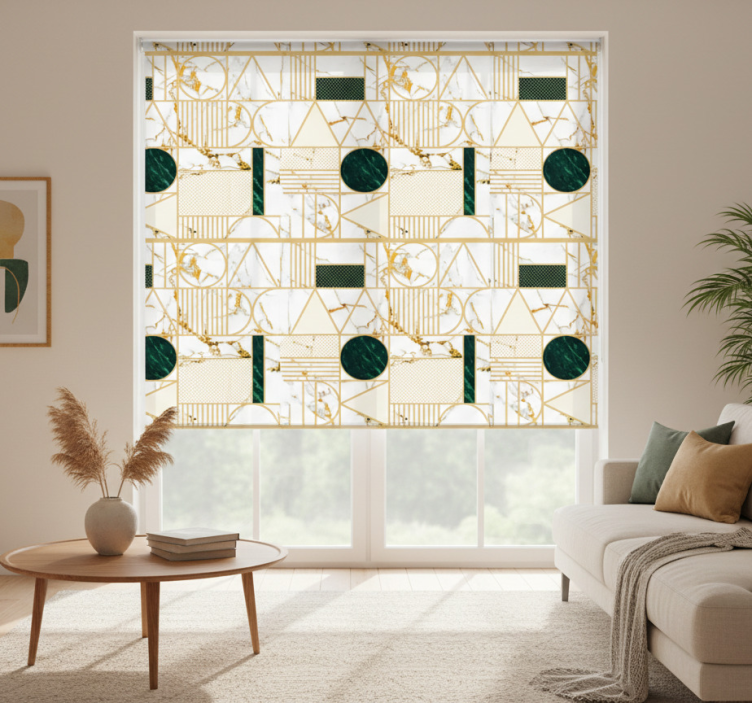 Reference: E7680Introducing our Modern blind in white marble geometric design, a stunning addition to any space! This unique blind features a sophisticated white marble pattern with geometric shapes that effortlessly enhances your decor. With easy assembly in just 2 clicks and an easy-to-clean surface, this roller blind is designed for modern living. Its innovative design allows for quick disassembly in 2 clicks, ensuring that you can maintain a clean window and surroundings with ease. Not only does it protect your room from direct sunlight, but it also provides privacy when lowered, allowing you to enjoy your space without interruptions!