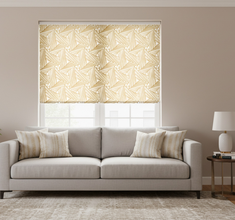 Reference: E7815Introducing our Modern blind minimalist geometric design, a perfect blend of style and functionality! This roller blind features a stunning geometric design that enhances any room's aesthetic. With easy assembly in just 2 clicks, simple cleaning, and quick disassembly, it offers unmatched convenience. Protect your space from direct sunlight while enjoying the privacy it provides when lowered. Additionally, it helps regulate room temperature and improves security by allowing you to see without being seen. Plus, our blinds come in 100% customizable measurements and three different textures to suit your light and privacy preferences!