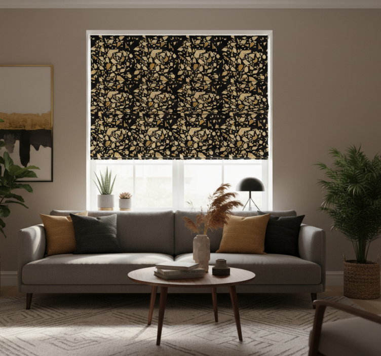 The Modern blind terrazzo style black gold modern blind is not just a window covering; it’s a statement piece that transforms your space into a chic haven. With its sophisticated design, it elevates your interior decor while protecting your home from harsh sunlight and providing the privacy you deserve. This blind allows you to express your unique style while ensuring your space remains cozy and inviting. Let your home reflect your personality!