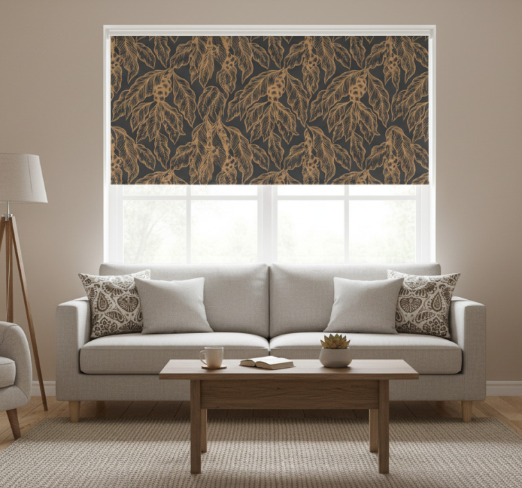 Modern blind with coffee tree branch design