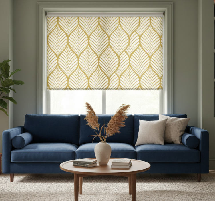 The Modern blind with golden geometric leaf design modern blind is more than just a window covering; it's a statement piece that elevates your interior decor! Imagine transforming your living space with its stylish and contemporary design. This roller blind not only enhances the aesthetic appeal of any room but also provides practical benefits such as light control and privacy. It's the perfect way to express your personality and create a warm, inviting atmosphere!