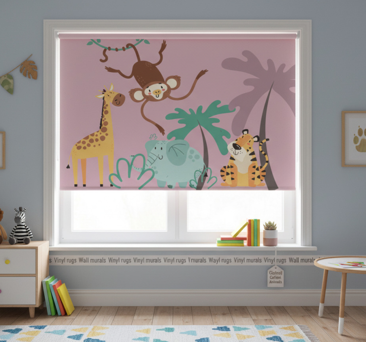 Roller blind purple colorful safari animal design