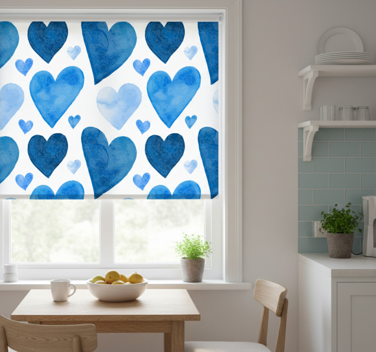 Reference: E6516Transform your kitchen into a cozy haven with our Sweet hearts blinds in a kitchen! These delightful roller blinds feature an enchanting design that combines charming heart motifs with a soft color palette, perfect for creating a warm and inviting atmosphere. Their easy assembly in just 2 clicks and easy cleaning make them a practical choice for any busy kitchen, while the option for 100% customizable measurements ensures a perfect fit for your window. The blinds protect your space from direct sunlight, provide necessary privacy, and allow you to regulate room temperature effortlessly!