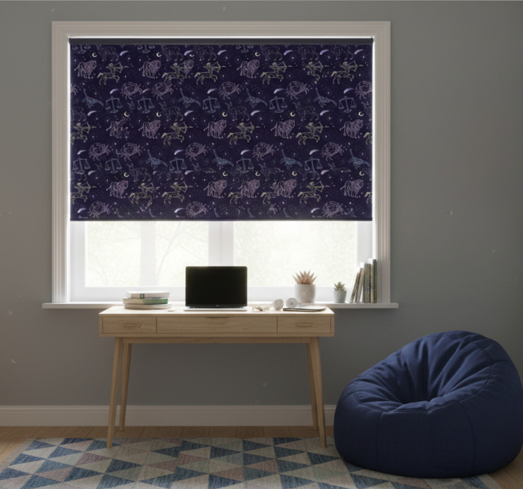 Reference: E7501Introducing our stunning Teenage blind constellation design, a perfect blend of artistry and functionality! This beautiful design features a mesmerizing constellation pattern that adds a touch of cosmic wonder to any room. Not only does it provide privacy when lowered, but it also protects your space from direct sunlight while allowing you to regulate the room temperature. With easy assembly and disassembly in just two clicks, cleaning your windows and surroundings has never been easier. The roller blind is 100% customizable to fit your unique measurements and comes in three different textures, allowing you to choose the perfect amount of light and privacy you desire!