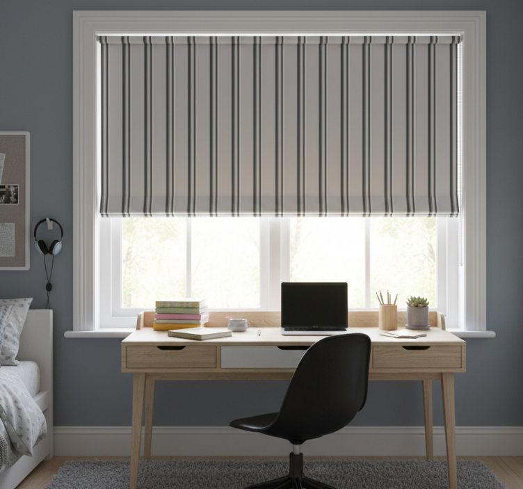 The Teenage blind in grey vertical striped style teenage blind is an ideal choice for enhancing your room’s decor. Its stylish design brings a contemporary vibe, infusing energy and inspiration into your space. Imagine the joy of transforming your bedroom or study area with a blind that not only looks great but also protects against harsh sunlight while maintaining your privacy. This roller blind is a fantastic way to express your personal style while ensuring functionality!