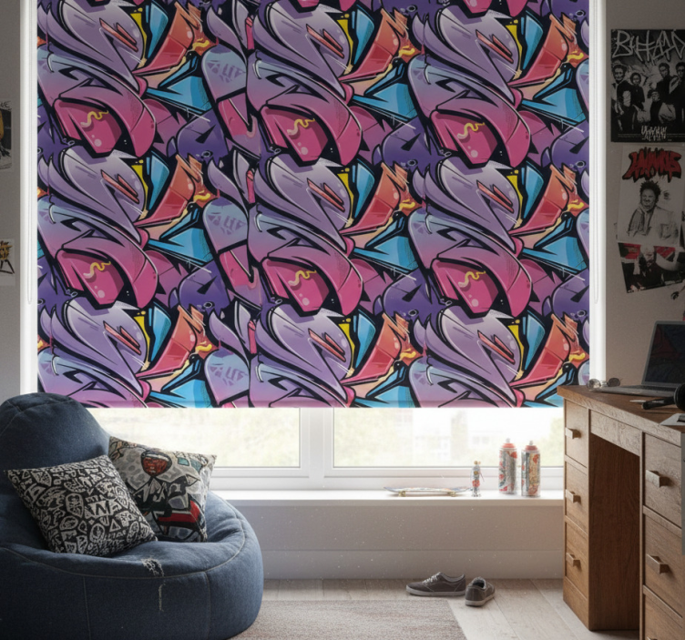 Reference: E7504Introducing our stunning Teenage blind realistic graffiti design, a vibrant and artistic addition to any room! This unique design features a blend of colorful graffiti art that captures the essence of youthful expression. Its eye-catching patterns not only enhance the aesthetic appeal but also offer practical benefits such as protecting the room from direct sunlight, providing privacy when lowered, and allowing for easy assembly and disassembly in just two clicks. Enjoy the freedom to regulate room temperature while keeping your space secure and stylish!