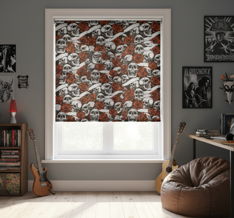 Transform your living space with the Teenage blind skulls and roses design! This teenage blind adds a touch of personality and attitude to any room, making it the perfect choice for teens looking to express their unique style. Its eye-catching graphics serve as a conversation starter, inspiring creativity and individuality. The blend of skulls and roses creates a harmonious balance between gothic and romantic elements, making it an ideal decoration for bedrooms, game rooms, or creative spaces. Let your walls tell a story!
