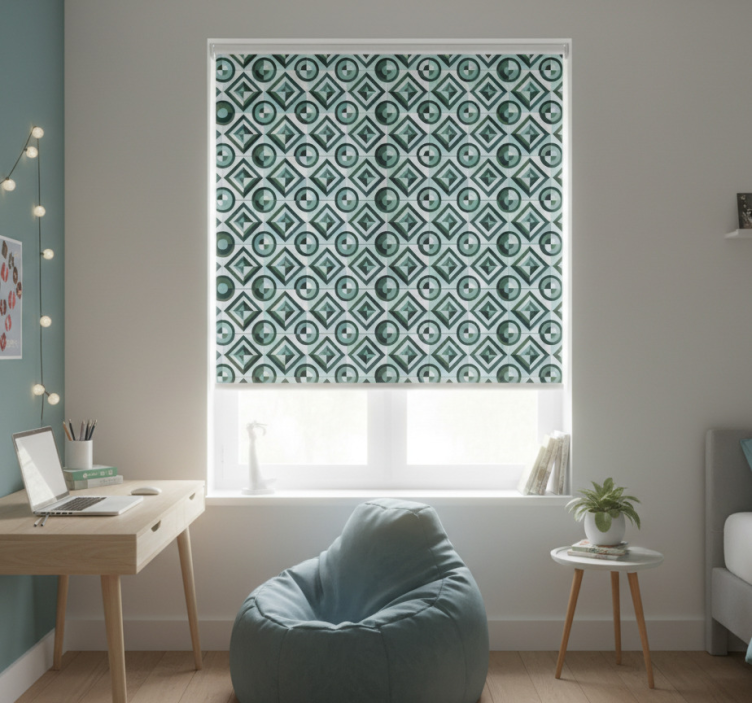 Reference: E7518Introducing our stunning Teenage blind vintage tile design vector illustration, a blend of artistic flair and functional design. This unique roller blind features an eye-catching vintage tile pattern that adds a splash of color and character to any room. Crafted with easy assembly in just two clicks, this roller blind is not only visually appealing but also practical, as it is easy to clean and disassemble, ensuring that your window and surroundings remain spotless. Enjoy the benefits of sunlight protection, privacy when lowered, and the ability to regulate room temperature—all while enhancing your home decor!