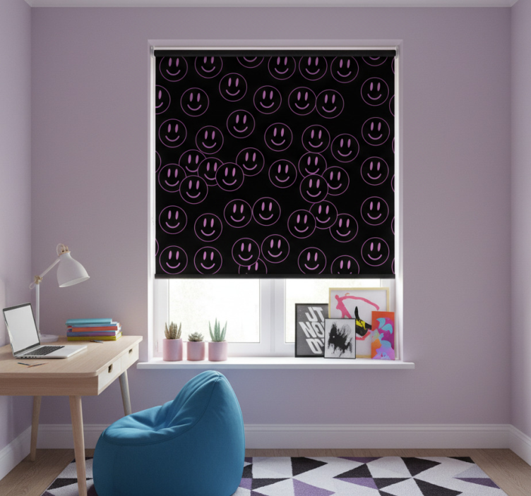 The Teenage blind white and purple smiley faces teenage blind is a fantastic choice for decoration because it can transform any space into a vibrant and cheerful environment! Imagine the joy and energy this design brings, making it perfect for bedrooms, playrooms, or study areas. Its playful aesthetic encourages creativity and positivity, making it an ideal focal point that uplifts the entire atmosphere. Let your room reflect your unique personality and style with this eye-catching roller blind!