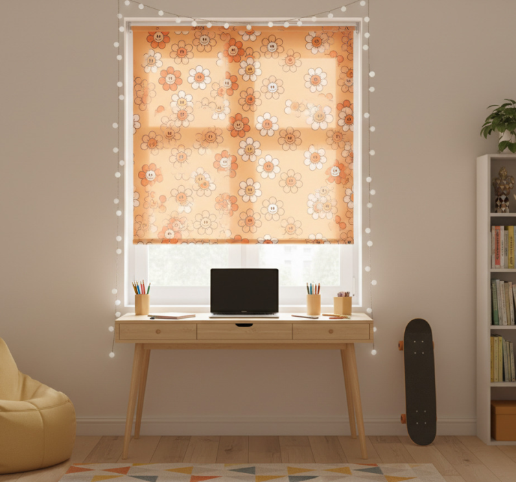 The Teenage blind with orange shades smiley faces teenage blind is more than just a window covering; it's a statement piece that elevates the decor of any room! With its bright, cheerful design, it inspires positivity and creativity, making it ideal for bedrooms, study areas, or playrooms. This roller blind not only enhances the aesthetic appeal but also brightens the mood, encouraging a joyful atmosphere that resonates with the energy of youth!