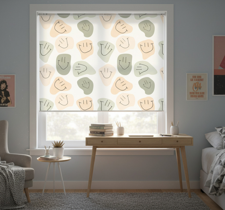 The Teenage blind with simple neutral smiley faces teenage blind is an ideal choice for decorating any teenage space, as it exudes a cheerful vibe that inspires creativity and positivity. Its playful design can transform a mundane room into a vibrant sanctuary, making it perfect for study areas or relaxation zones. The fun and engaging print encourages a light-hearted atmosphere, making it a fantastic addition to your home!