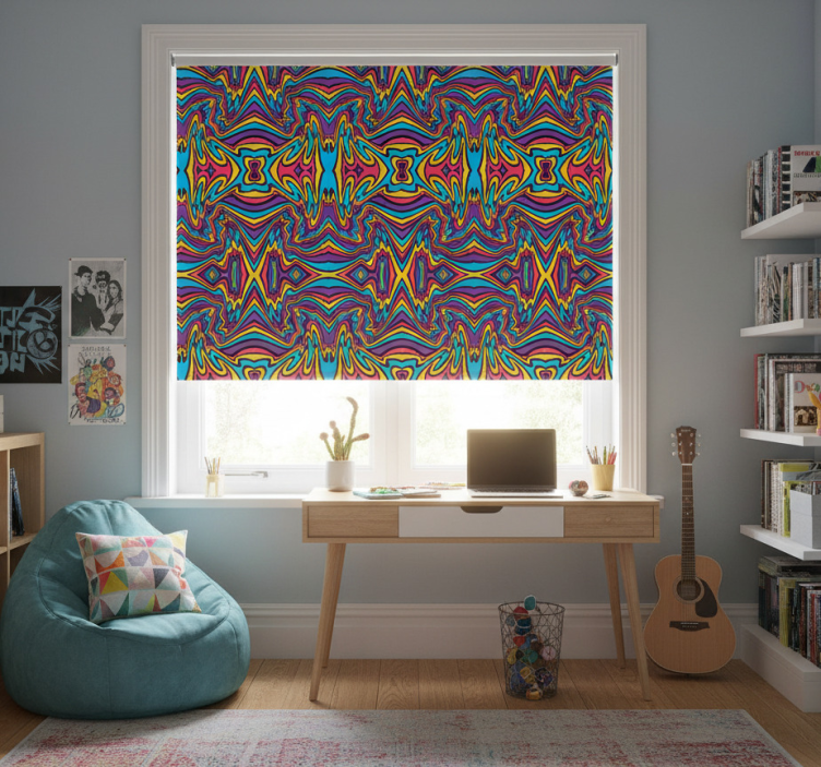 The Teenage blind with vibrant colors and funky lines teenage blind is a fantastic choice for anyone looking to infuse energy and creativity into their space. Its unique design serves as both a decorative element and a functional window treatment, making it ideal for bedrooms, playrooms, or study areas. Let this blind inspire you to express your individuality and transform your room into a vibrant sanctuary!