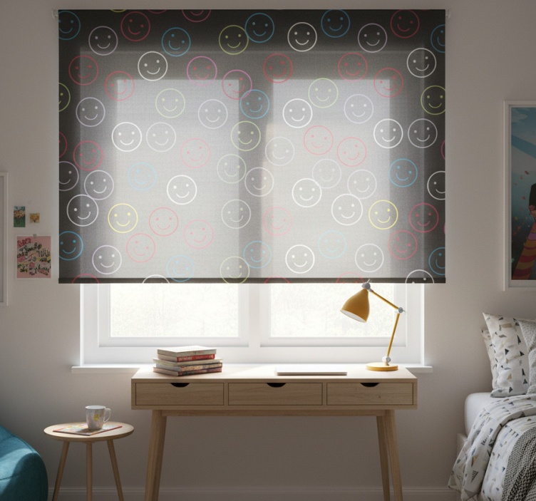 The Teenage blind with vibrant smiley faces teenage blind is not just a window covering; it's a fun expression of personality! This cheerful design will inspire creativity and joy in any space. Perfect for bedrooms, playrooms, or study areas, it creates a warm and welcoming environment. The bright colors and playful images evoke smiles and happiness, making every day a little brighter. Let your personality shine through with this unique decoration that is sure to impress!