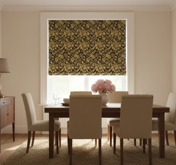 Reference: E6755Transform your space with our Vintage french floral pattern dining room blind, a stunning piece that beautifully blends elegance and functionality. The intricate floral design evokes a sense of nostalgia while adding a touch of sophistication to your dining area. Crafted with premium materials, this roller blind not only enhances your decor but also offers practical features such as easy assembly, easy cleaning, and the ability to control light and privacy levels. Enjoy the perfect atmosphere for every occasion!