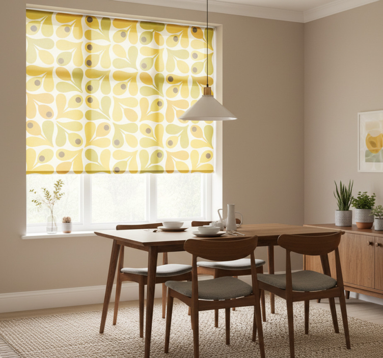 The Yellow roller blind retro yellow patterns yellow roller blind is not just a window covering; it's a statement piece! Its cheerful design infuses energy into your living area, dining room, or bedroom, inspiring creativity and joy. By choosing this roller blind, you're not only enhancing your home’s aesthetic but also creating a cozy environment that reflects your vibrant personality. Transform your space and let your windows shine with this beautiful addition!