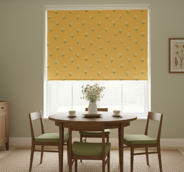 Yellow roller blind with 1940s daisy nursery design