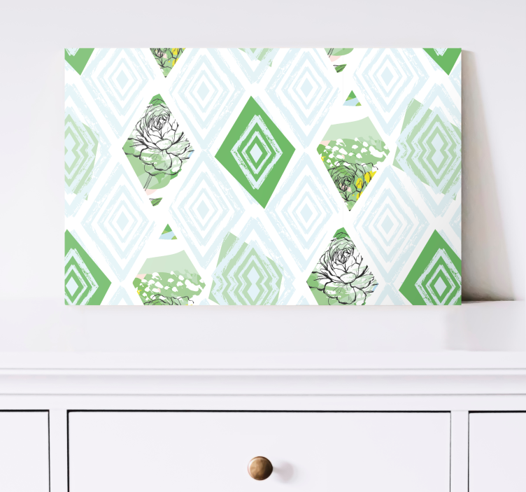 Introducing our stunning Flowers canvas geometric succulent design! This enchanting piece showcases a beautiful blend of flowers and shapes in a mesmerizing geometric arrangement. The design features striking diamond and rhombus patterns adorned with vibrant shades of green, drawing inspiration from nature and the captivating world of abstract art. Perfectly encapsulating the essence of succulent plants, this canvas brings a refreshing touch to any space.