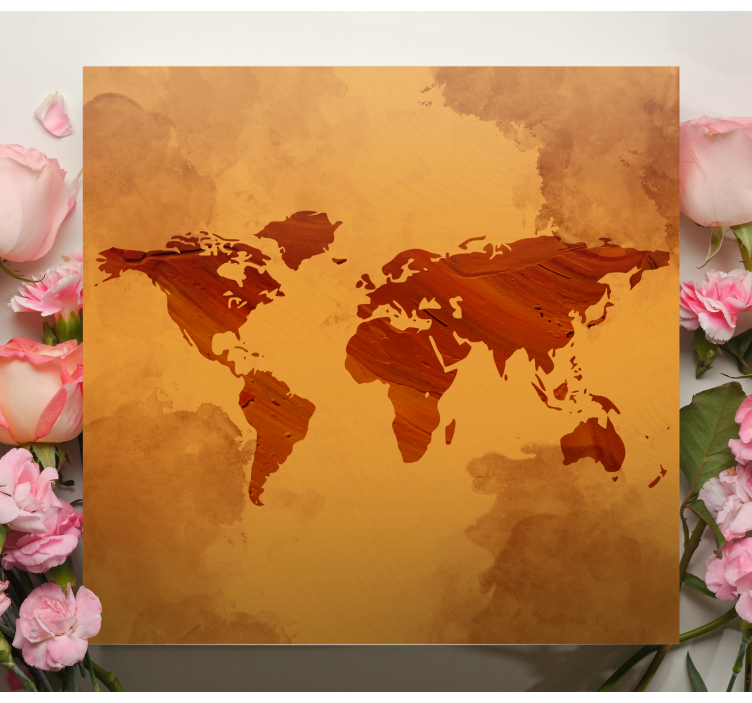Transform your space with our World map wall art vintage global map. This stunning design features a beautifully painted world map, showcasing textured brown continents that evoke a sense of adventure and exploration. The intricate geography invites you to appreciate the beauty of our planet, making it a perfect addition to any decor.