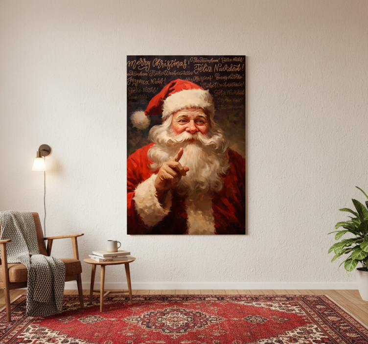 Reference: G1089Bring the magic of the holiday season into your home with our stunning Christmas poster santa claus portrait. This beautifully designed poster features a captivating portrait of Santa Claus, adorned with vibrant colors that pop against a semi-matt finish without reflections. The high colour intensity ensures that this piece stands out, making it a perfect addition to your festive decor. With a robust 180g/m2 grammage, this poster is ideal for showcasing your holiday spirit.