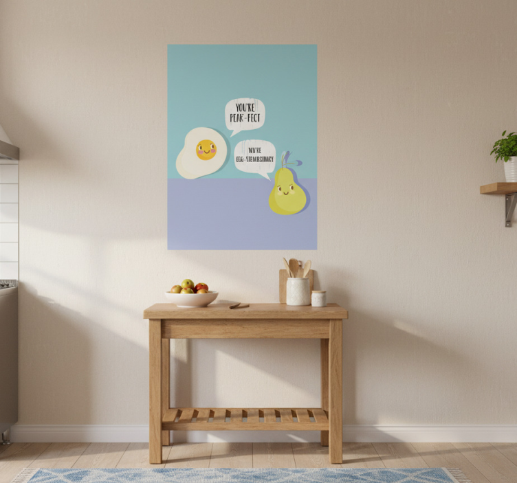 The Egg-cellent pears kitchen poster kitchen poster is an inspirational piece that transforms your kitchen into a lively and inviting area. Its bright colors and whimsical design not only celebrate the beauty of fruits but also create a joyful atmosphere, making it the perfect focal point for gatherings and mealtime moments. Elevate your decor and let your kitchen reflect your personality!