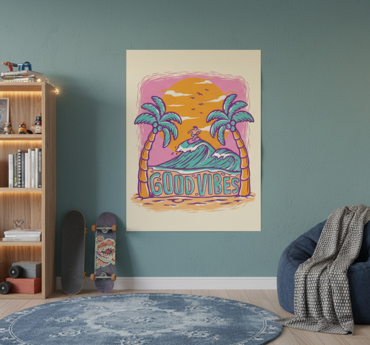 Transform any room into a surf-inspired haven with the Good vibes surf poster for teenager. This poster not only adds stunning visual appeal but also creates an uplifting atmosphere. Ideal for teenage rooms, it encourages positivity and adventure, making it a must-have for any young person looking to express their passion for surfing and the beach lifestyle!