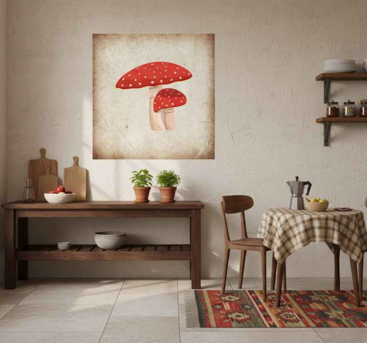 Reference: G610Introducing our stunning Kitchen poster amanita mushroom illustration, a captivating blend of artistry and nature! This beautiful design features a vibrant, detailed depiction of the amanita mushroom, crafted with high colour intensity and a semi-matt finish that ensures no reflections interfere with its striking visuals. Printed on high-quality 180g/m2 paper, this poster is ideal for adding a touch of elegance and whimsy to your kitchen decor.