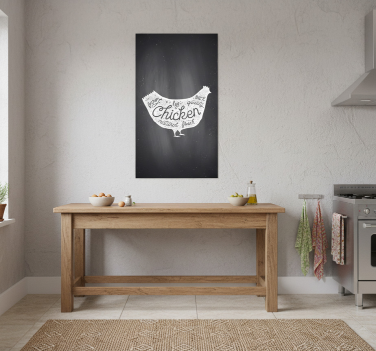 Reference: G649Introducing our delightful Kitchen poster farm fresh chicken art print, a charming addition to any culinary space! This beautifully designed poster features vibrant colors and an engaging farm-fresh aesthetic, making it a perfect focal point for your kitchen. Created with 180g/m2 grammage and a semi-matt finish, it offers high color intensity without reflections, ensuring it stands out in any environment.