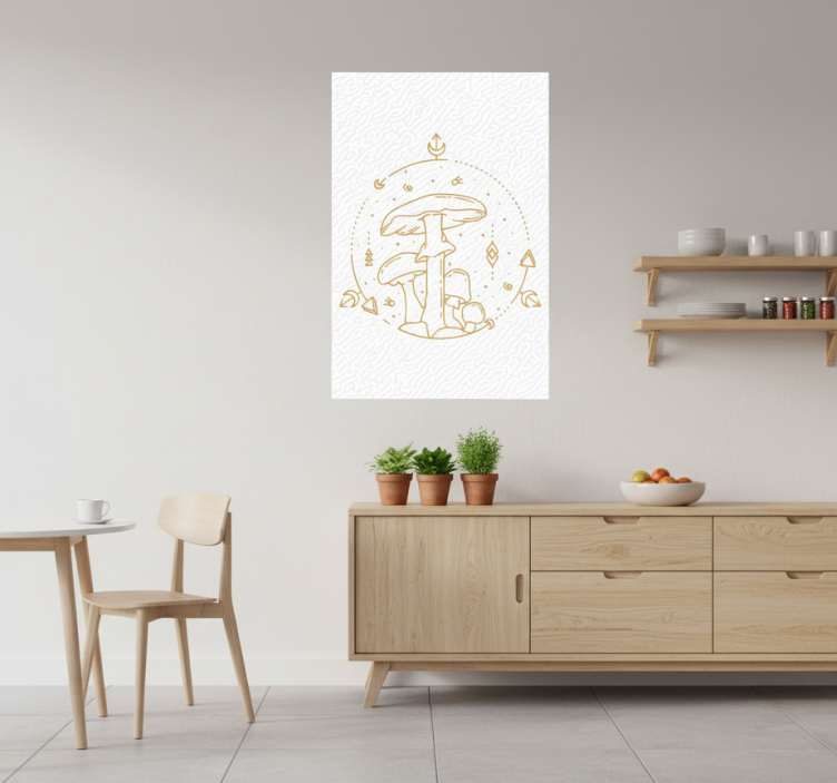 Reference: G654Introducing our stunning Kitchen poster geometric mushroom line art, a perfect blend of modern design and natural beauty! This unique piece showcases a captivating geometric representation of mushrooms, crafted with high colour intensity on quality 180g/m2 paper to ensure durability. The semi-matt finish eliminates reflections, allowing you to appreciate the intricate details of the artwork in any lighting. Transform your kitchen space with this eye-catching art that effortlessly combines elegance and a touch of whimsy!
