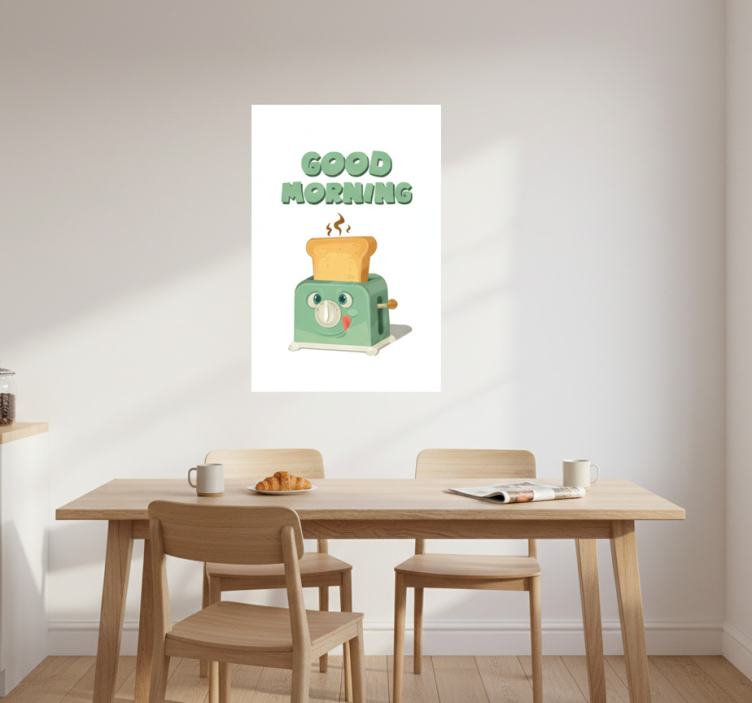 Enhancing your kitchen with the Kitchen poster good morning with toaster kitchen poster art is simple! The best option for placement is using double-sided adhesive tape on the back of the poster for a smooth and clean finish. Alternatively, you can frame it or use thumbtacks and reusable blu-tack for a more flexible approach. Stick the strips to the back and hold each firmly for 10 seconds to ensure it stays put!
