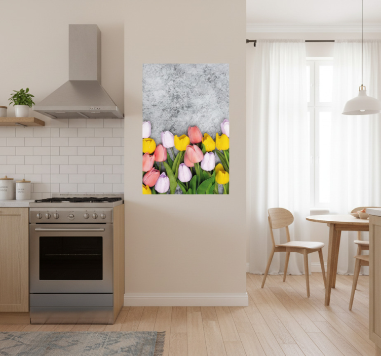 For a seamless look, we recommend using double-sided adhesive tape for your Kitchen poster of similar tulip flowers kitchen poster art. Simply stick the strips on the back, hold each strip firmly for 10 seconds, and enjoy your new decor! Alternatively, you can frame it for a polished touch, or use thumbtacks and reusable blu-tack for a flexible hanging solution.