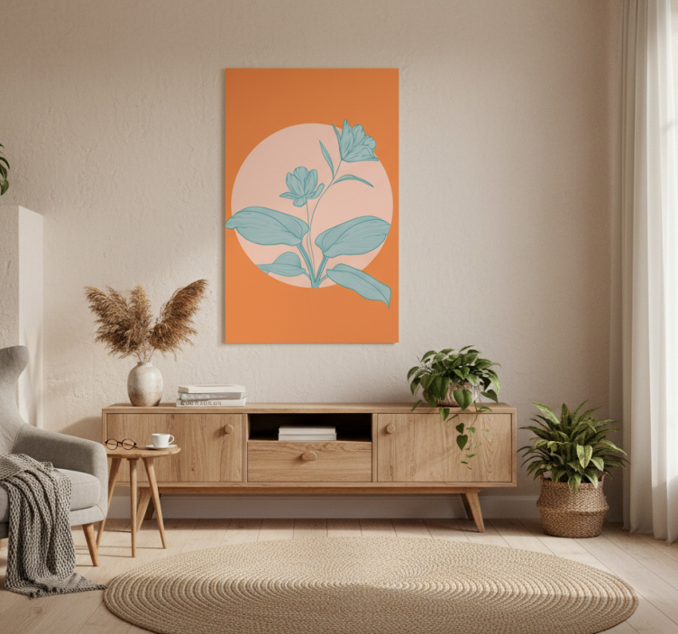 Reference: G890Transform your living space with our stunning Living room poster blue flowers on orange shapes. This eye-catching design features vibrant blue flowers set against a backdrop of bold orange shapes, creating a beautiful contrast that effortlessly brightens any room. Crafted with 180g/m2 grammage for a premium feel, this poster boasts a semi-matt finish that prevents reflections while showcasing high color intensity, making it a perfect addition to your home decor!