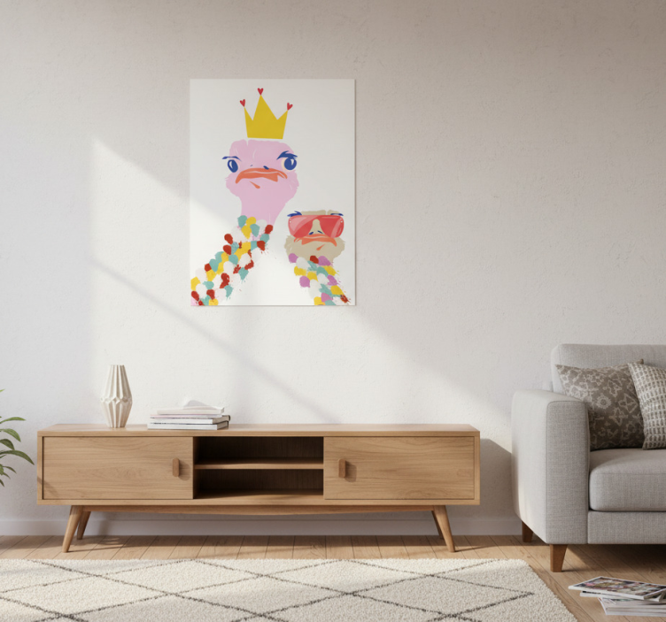 Living room poster colorful ostriches art style