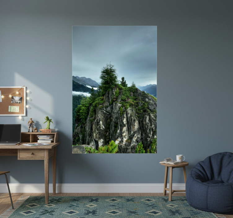 Reference: G793Introducing our stunning Living room poster of a single rock in green forest, a captivating piece of art that beautifully merges nature and tranquility. This poster showcases a solitary rock nestled amongst lush greenery, creating a harmonious blend of earthy tones and vibrant hues. With a 180g/m2 grammage, it is ideal for posters, featuring a semi-matt finish that eliminates reflections, allowing the high color intensity to shine through and breathe life into your living space.