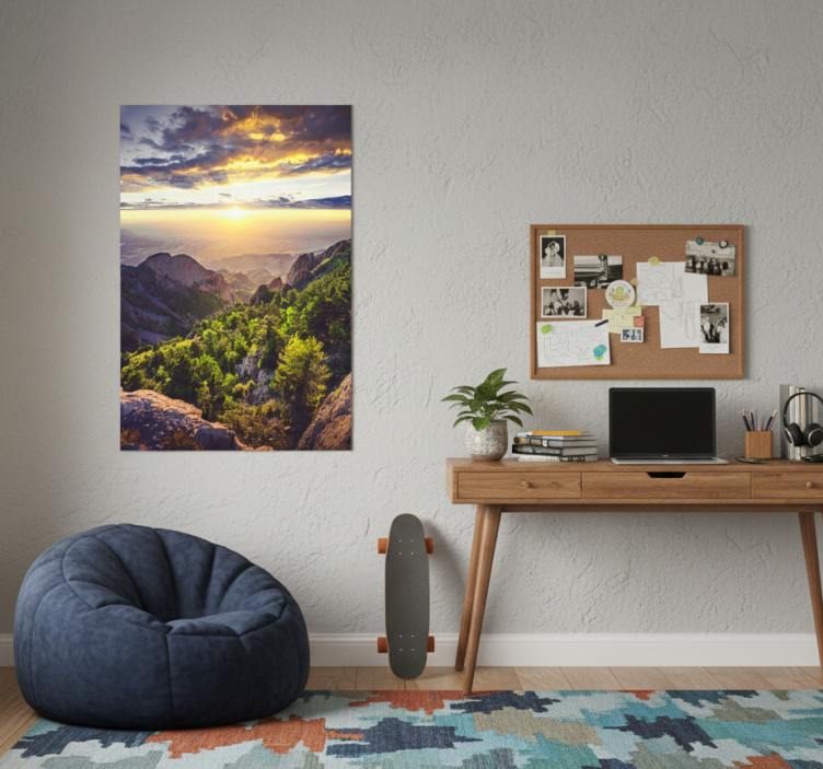 Reference: G772Transform your living space with our stunning Living room poster sunrise on the mountain. This breathtaking design captures the essence of a tranquil sunrise, featuring vibrant colors that blend seamlessly to create a serene mountain landscape. The poster is printed on high-quality 180g/m2 paper, offering a semi-matt finish that eliminates reflections while showcasing high color intensity. This design not only enhances your decor but also brings a sense of peace and inspiration into your home!