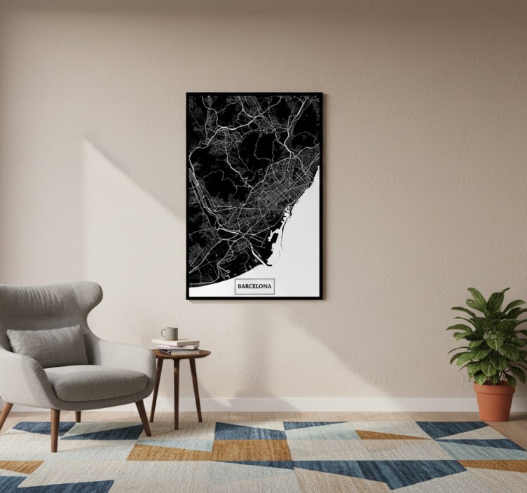 Reference: G845Elevate your space with our stunning Living room poster topographic map of barcelona, featuring a captivating graphically rich design that showcases intricate details, high colour intensity, and a semi-matt finish without reflections. This artistic representation not only captures the essence of Barcelona’s landscape but also brings an element of sophistication to your living area!