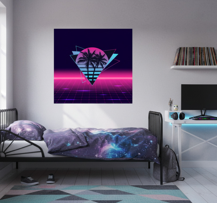 Reference: G773Introducing our stunning Living room poster vaporwave style palm tree, a vibrant and captivating piece that instantly elevates your space! This poster features a mesmerizing blend of retro aesthetics and tropical vibes, showcasing a palm tree against a backdrop of neon colors and geometric patterns. With a 180g/m2 grammage that ensures durability, a semi-matt finish that prevents reflections, and high color intensity that brings the design to life, this poster is perfect for those looking to make a statement in their living room.