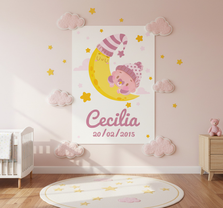 Reference: G922Introducing our stunning Nursery poster baby with name and birth date, designed to bring joy and warmth to your little one's space! This visually captivating poster features a charming blend of pastel colors and delightful illustrations, creating an inviting atmosphere for any nursery. Crafted from 180g/m2 grammage material, it is perfect for posters, ensuring durability and vibrancy. The semi-matt finish eliminates reflections, allowing the high color intensity to shine through beautifully.