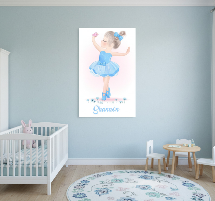 Reference: G923Introducing our enchanting Nursery poster blue ballerina with name, a delightful addition to any child's room! This beautifully designed poster features a graceful ballerina in shades of blue, surrounded by whimsical elements that inspire creativity and joy. With a 180g/m2 grammage for durability, a semi-matt finish that minimizes reflections, and high colour intensity, this nursery poster is perfect for creating a magical atmosphere for your little one!