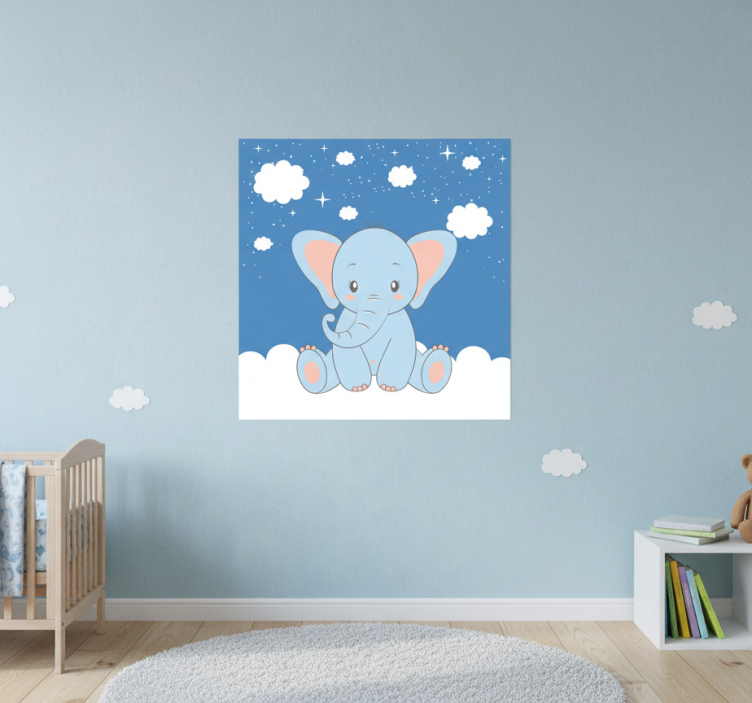 Reference: G904Introducing our delightful Nursery poster cute baby blue elephant cartoon, a charming addition to any child's space! This whimsical design features a playful blue elephant adorned with vibrant colors that will capture the imagination of your little one. Crafted with 180g/m2 grammage, this poster provides the ideal weight for durability and display. The semi-matt finish ensures there are no reflections, allowing the high color intensity to shine through beautifully, making it a perfect focal point in your nursery!
