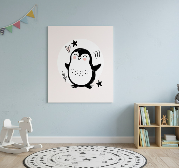 Reference: G911Introducing our Nursery poster cute drawn baby penguin doodle, a delightful addition to any child's room! This charming design features an adorable baby penguin in a playful doodle style that captures the hearts of both kids and adults alike. With its 180g/m2 grammage, this poster is ideal for showcasing its vibrant colors and intricate details. The semi-matt finish ensures no reflections, allowing the high color intensity to shine through, making it a standout piece in any nursery.