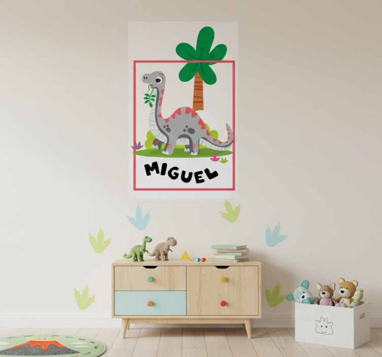 Reference: G963Introducing our stunning Nursery poster gray long neck dinosaur art, a delightful addition to any child's room! This beautifully crafted design features a charming long-neck dinosaur, set against a soft gray backdrop, making it a perfect blend of whimsy and sophistication. With a semi-matt finish that eliminates reflections, the vibrant colors pop with high intensity, ensuring that this art piece catches the eye and ignites the imagination.
