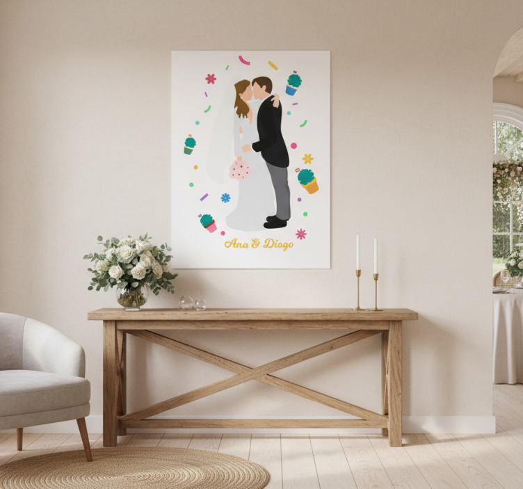 Reference: G1086Introducing the stunning santo antónio weddings event poster, designed to elevate your special day with its eye-catching features. This delightful poster showcases a vibrant and colorful design, printed on high-quality 180g/m2 grammage paper, ensuring durability and an impressive semi-matt finish that enhances its visual appeal without reflections. The high color intensity brings the artwork to life, making it a perfect centerpiece for any wedding celebration!