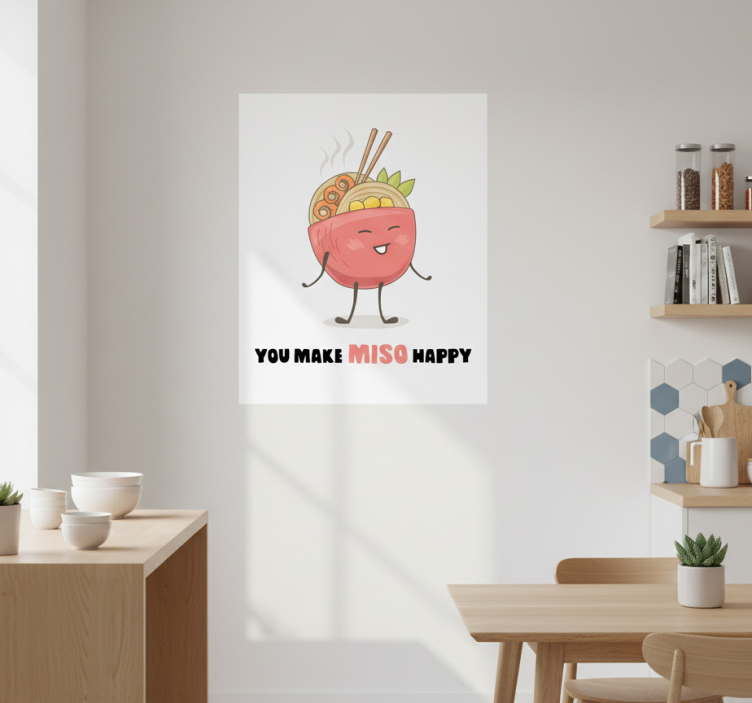 Reference: G631Introducing the You make me happy kitchen poster, a vibrant and uplifting addition to your kitchen decor! This beautifully crafted design features high colour intensity, a semi-matt finish that prevents reflections, and is made from 180g/m2 grammage, making it ideal for posters. Transform your kitchen space with this cheerful artwork that radiates joy and positivity!