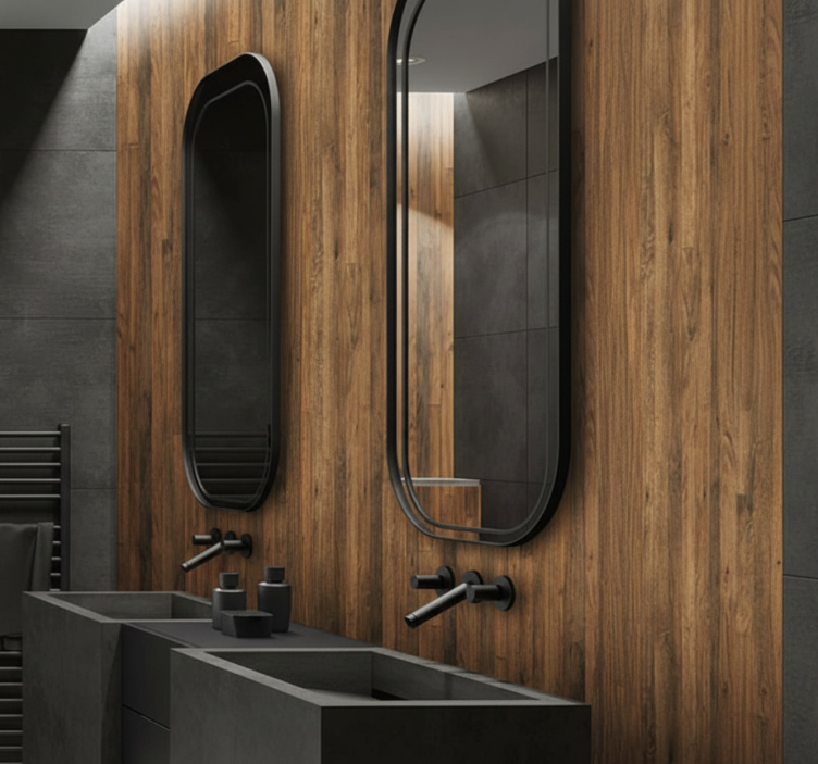 Reference: A53882The Bathroom wall sticker walnut wood effect backsplash is a stunning blend of modern design and natural aesthetics, bringing the warm ambiance of walnut wood into your space. This exquisite wall sticker showcases a realistic wood effect that captures the intricate details of walnut grain, creating a cozy and inviting atmosphere in any bathroom setting. Its satin finish enhances the color intensity while preventing glare, making it a perfect choice for both interior and exterior applications.