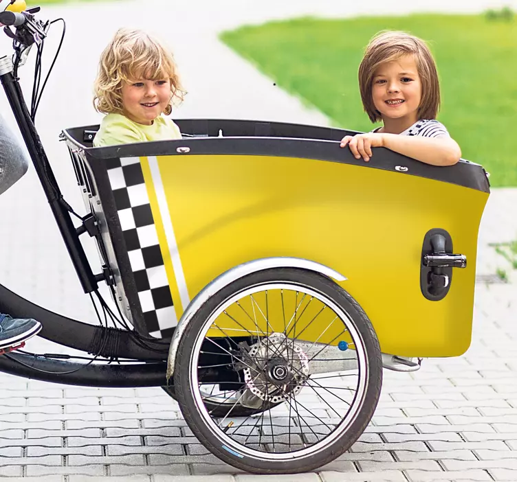 Introducing our Bike sticker yellow taxi design, a playful and fun addition to your bike! This charming design features a vibrant yellow taxi, perfect for adding a splash of color to your ride. It's designed to resemble a cab transporting children, making it an ideal choice for parents who want to bring joy and excitement to their little ones' biking adventures. The bakfiets design adds a unique twist, combining style with functionality!