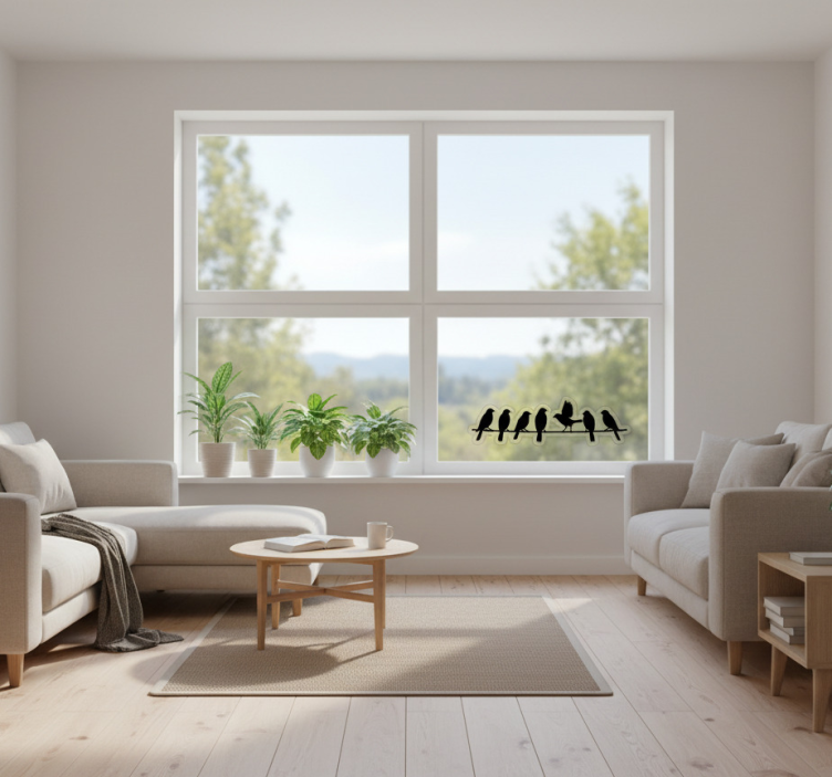 Reference: A54282Brighten up your space with our Birds on a line rack window sticker! This delightful design features charming birds perched on a delicate line, creating a whimsical touch to your home or office. Crafted with a satin finish, this sticker ensures that reflections from indoor or outdoor light are minimized, allowing you to enjoy vivid colors without any glare. The high-quality materials guarantee durability, making it a fantastic option for long-term decoration.