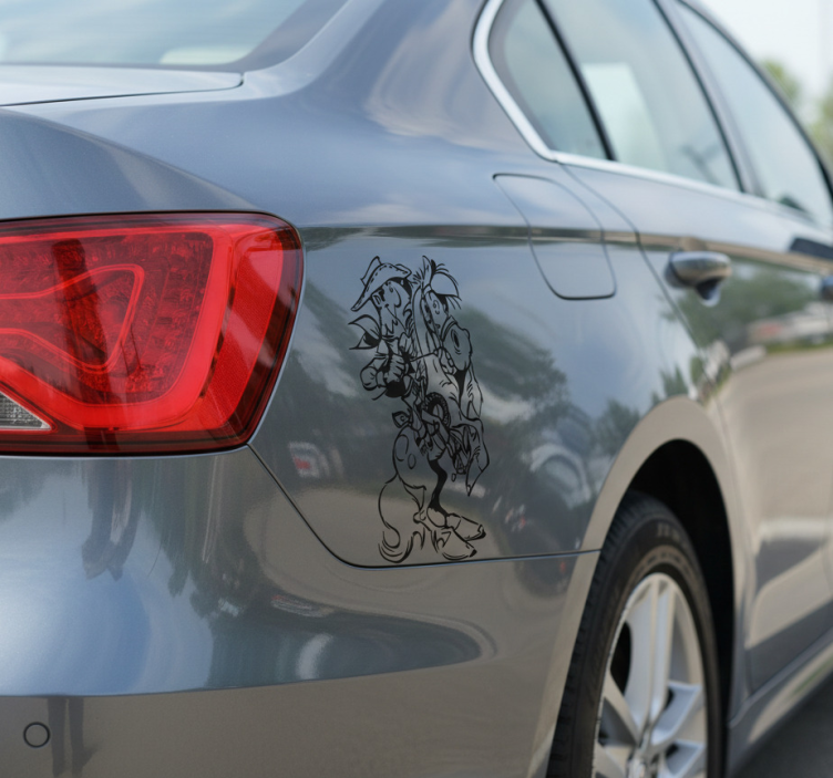 Car sticker of wild horse and cowboy